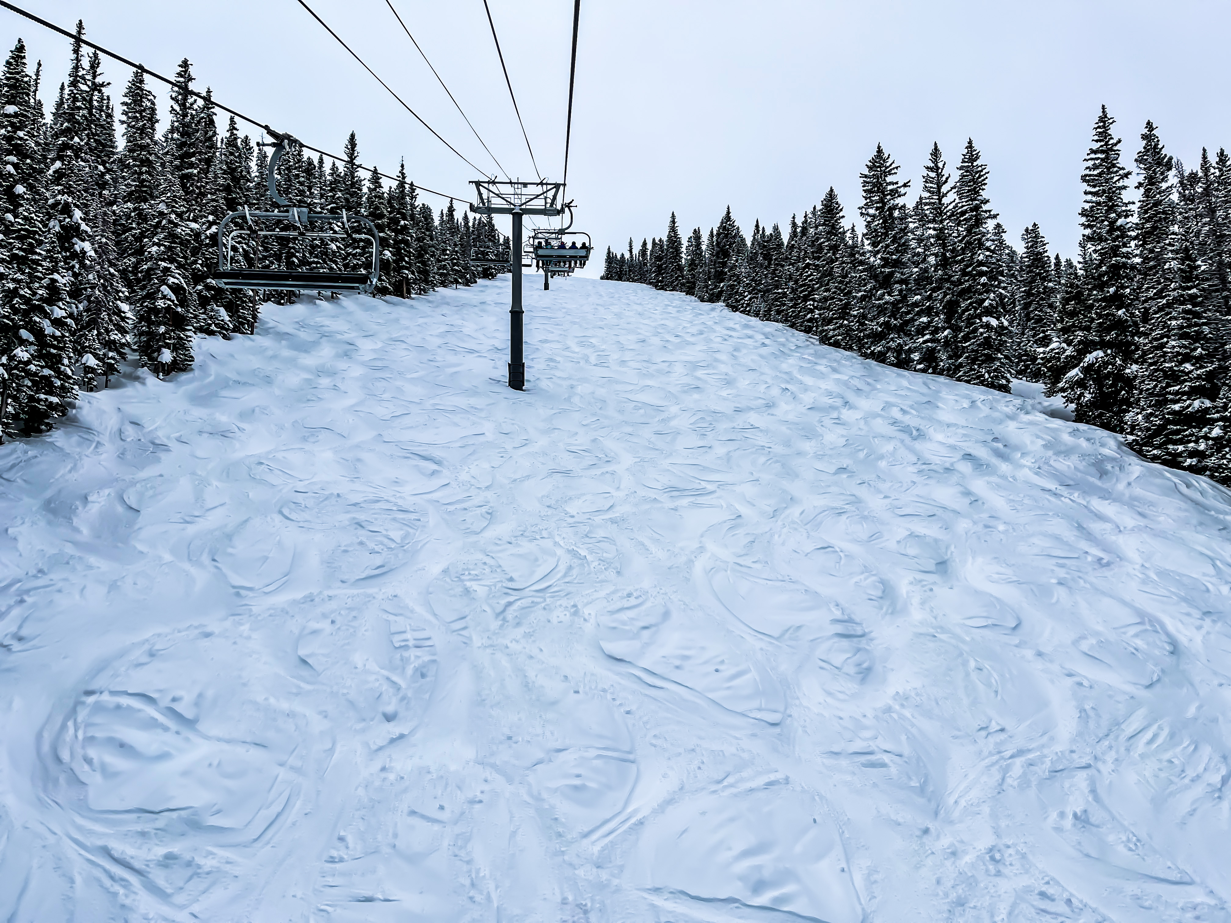 A “zipper line” is a skiing technique where the skier takes the fastest and most direct path along the fall line of a mogul field with minimal turns, allowing their knees to flex over the bumps rather than turning around them. Taking the zipper line requires expertise, courage and grit.
